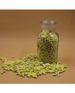 شکل ظاهری:معمولاً به صورت پودر یا دانههای بلوری زرد رنگ.