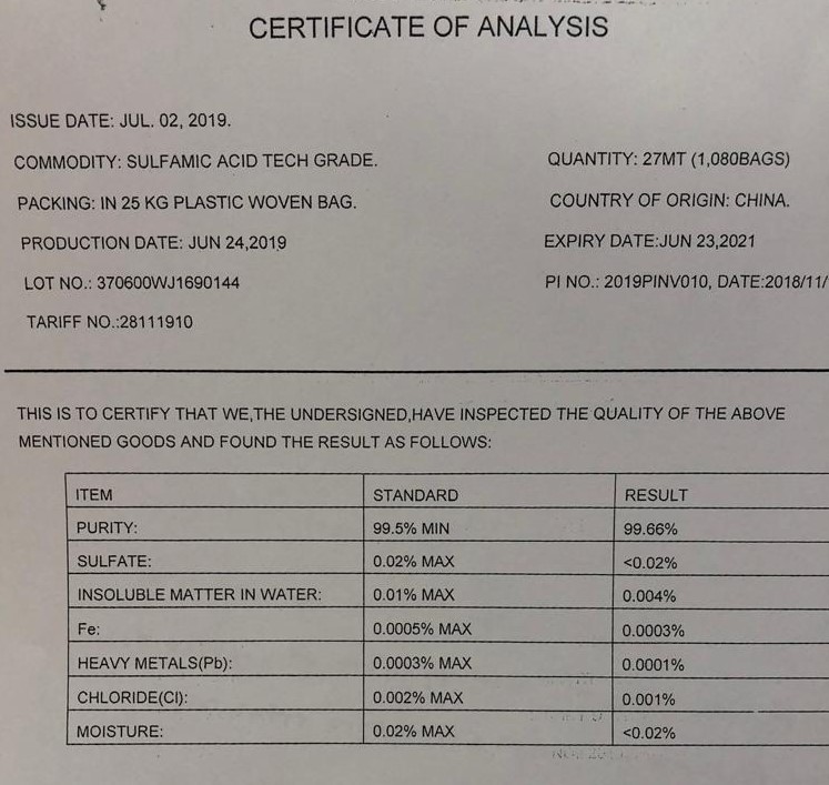 هند: به دلیل رشد سریع صنایع شیمیایی و تمیزکننده، هند یکی از بزرگترین واردکنندگان اسید سولفامیک است.